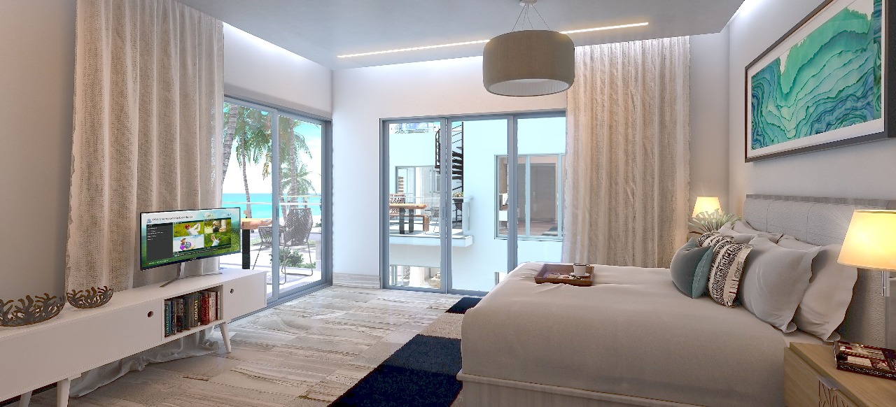 BLUE BAY PROYECTO VILLAS. Conjunto de villas en planos directo en la playa en el residencial exclusivo Blue Bay dentro del residencial hotelero Playa Nueva Romana Marina Golf, con hermosas vistas hacia la playa y hacia la Marina en proyecto.